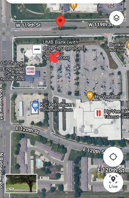 We'll park in the Hyvee parking lot towards the west end facing UMB Bank.